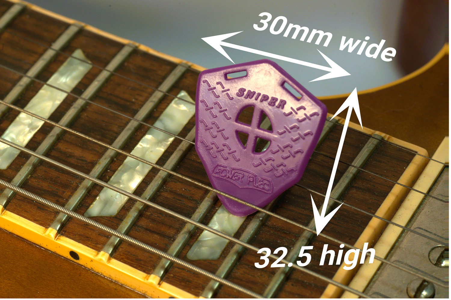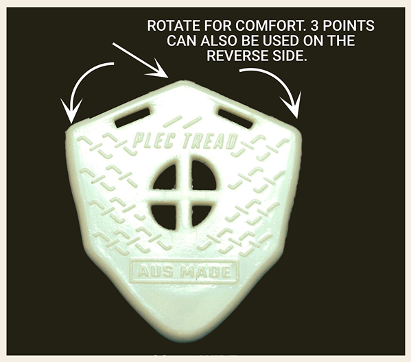 Gauge: 1.50 mm thickness in grip zone area and 1 mm at striking point. Normally this thickness would be categorized as heavy gauge, however, due to the high-flex action, we consider this plec to be medium gauge